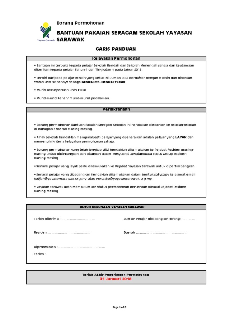 Borang Pakaian Seragam 2018 Pdf